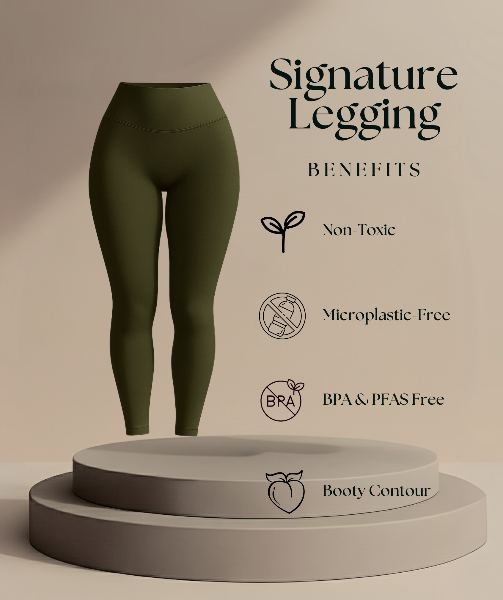 Size XS for 36 inch glutes and 25 inch waist. Obsessed with these brown leggings — soft, breathable, and the perfect earthy tone. They move with me, hold their shape, and look just as good for a coffee run as they do in the gym. Sustainable, non-toxic, and effortlessly chic.